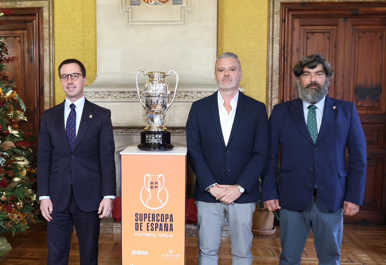 El presidente Galmés y el consejero de Deportes Bestard presentan el campeonato de fútbol sala que tendrá lugar en Son Moix los días 3 y 4 de enero.